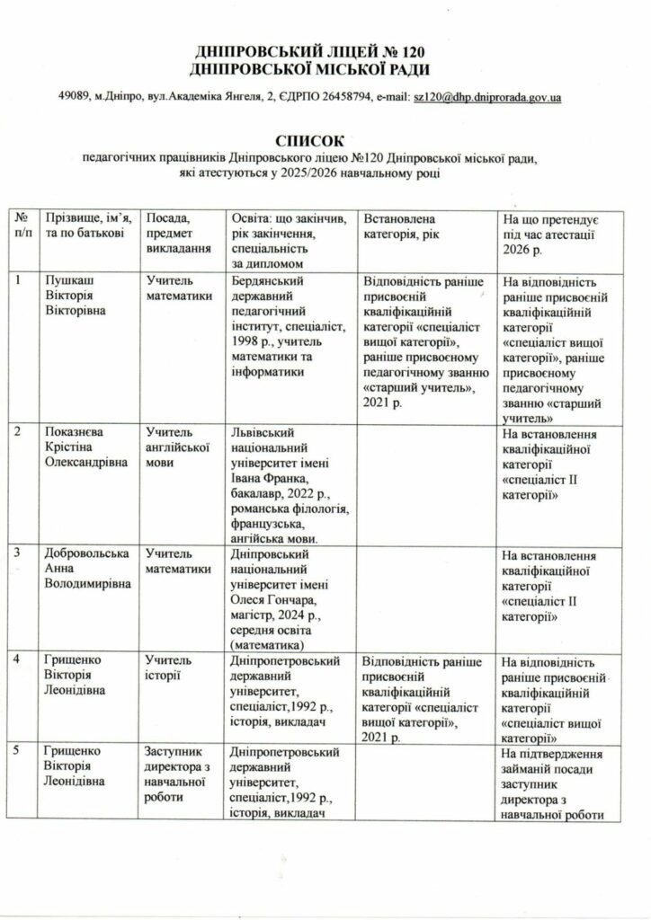 Департамент гуманітарної політики нагородив подяками та грамотами вчителів НВК 120